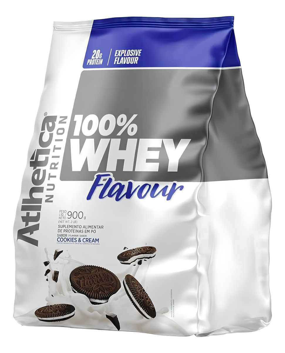 O 100% Whey Flavour Cookie & cream Atlhetica,ajuda no ganho de massa muscular, auxiliando na redução da fadiga muscular e ajudando na recuperação muscular no pós-treino.