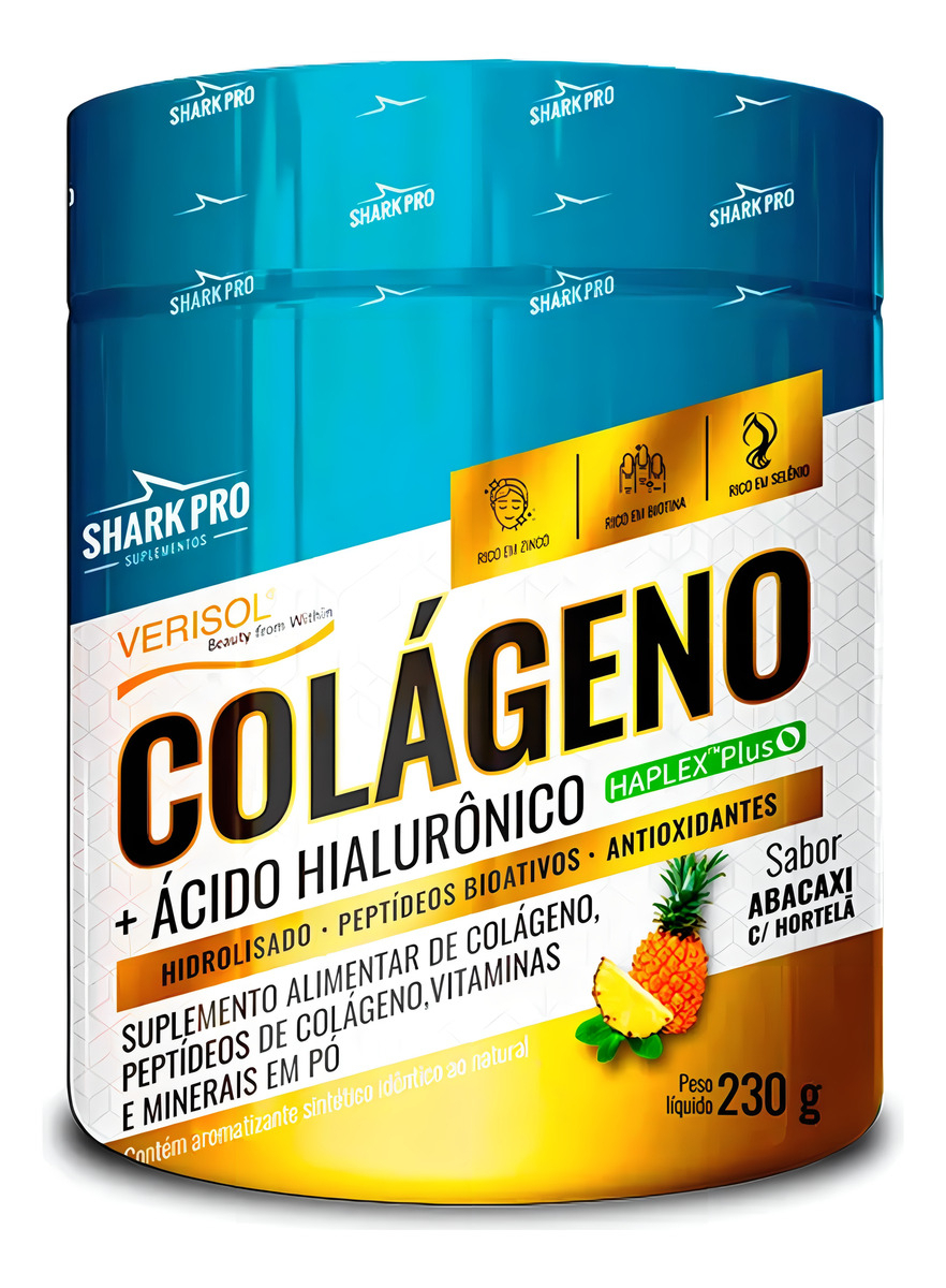 Veja como tomar - Colágeno + Ácido Hialurônico - 230g Abacaxi Com Hortelã - Shark Pro
