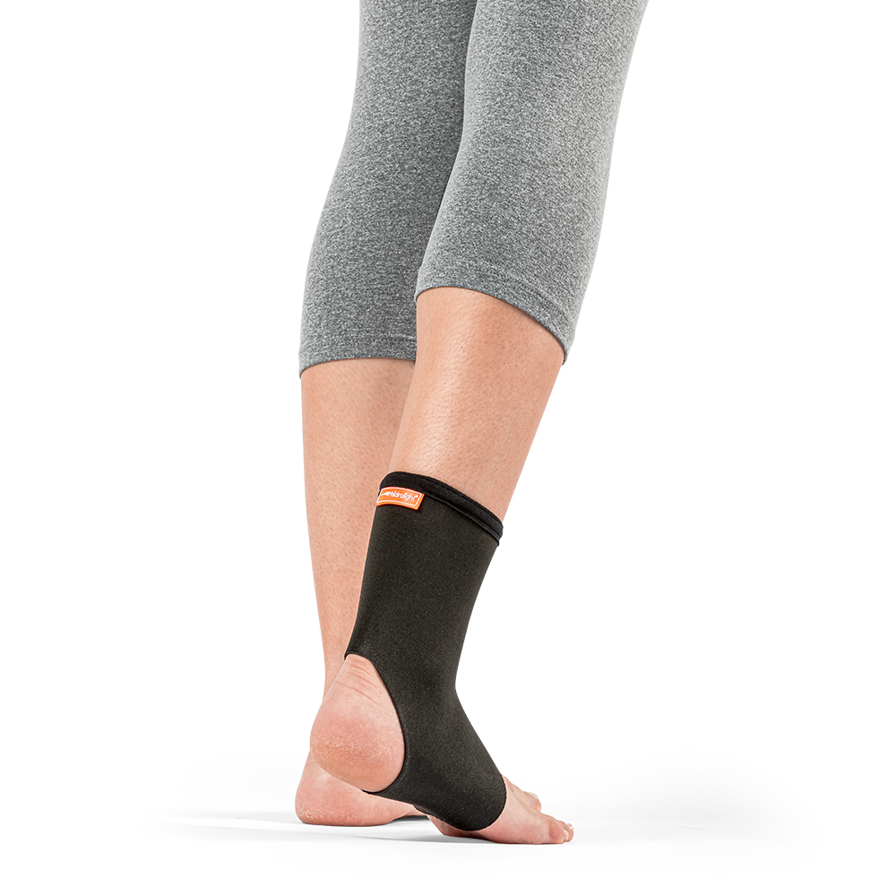 Vista o produto pelo pé, encaixe o calcanhar no orifício, posicione de modo que fique confortável e permita a movimentação